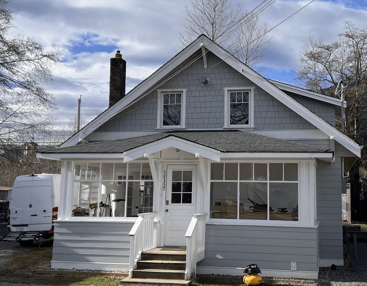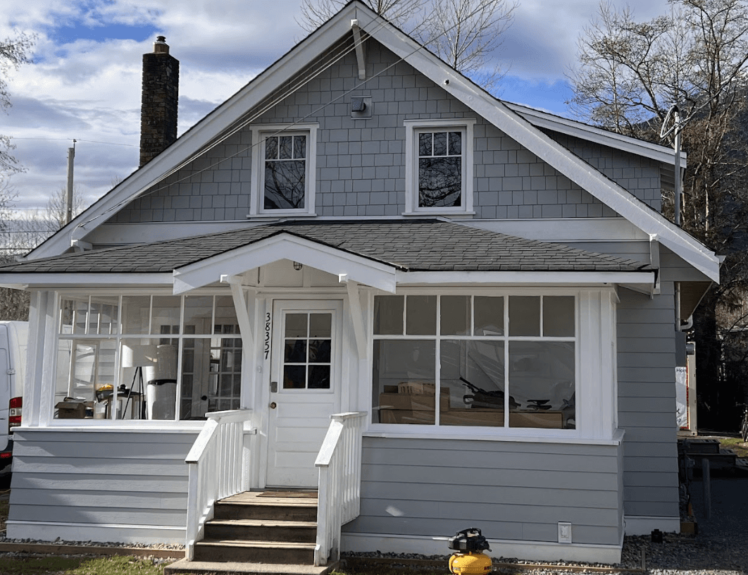 The architectural changes restored the house’s Craftsman identity: deeper gables, defined dormers, rebuilt knee braces, and a porch that finally matched the massing and function of the home. The deeper-set windows and consistent siding profiles tied everything together visually.
